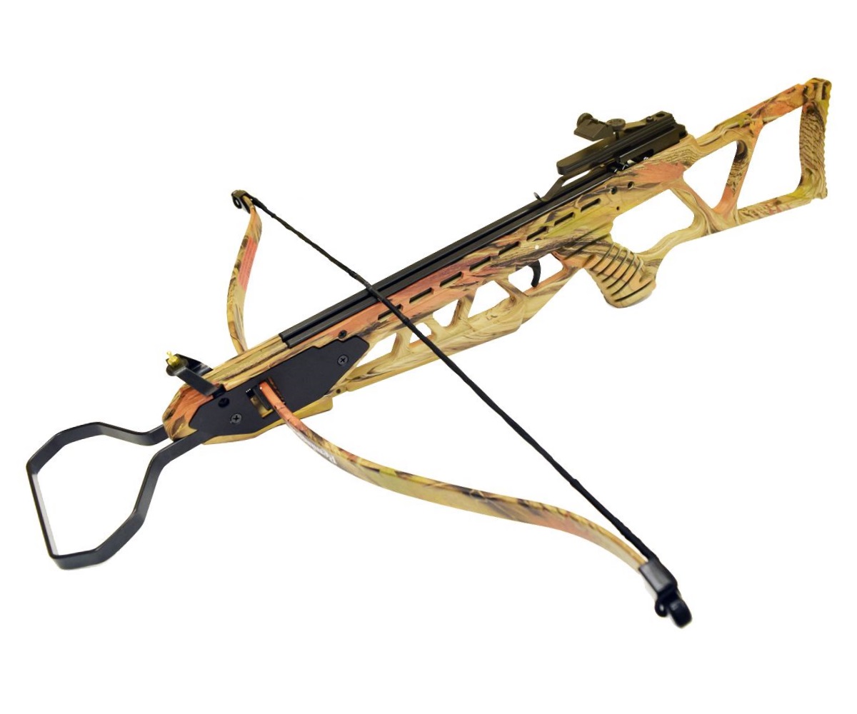 | Комплектация (?): | корпус арбалета, плечи, 2 алюминиевые стрелы 14″, тетива, открытый регулируемый (диоптрический 2x) прицел, ключ для сборки |