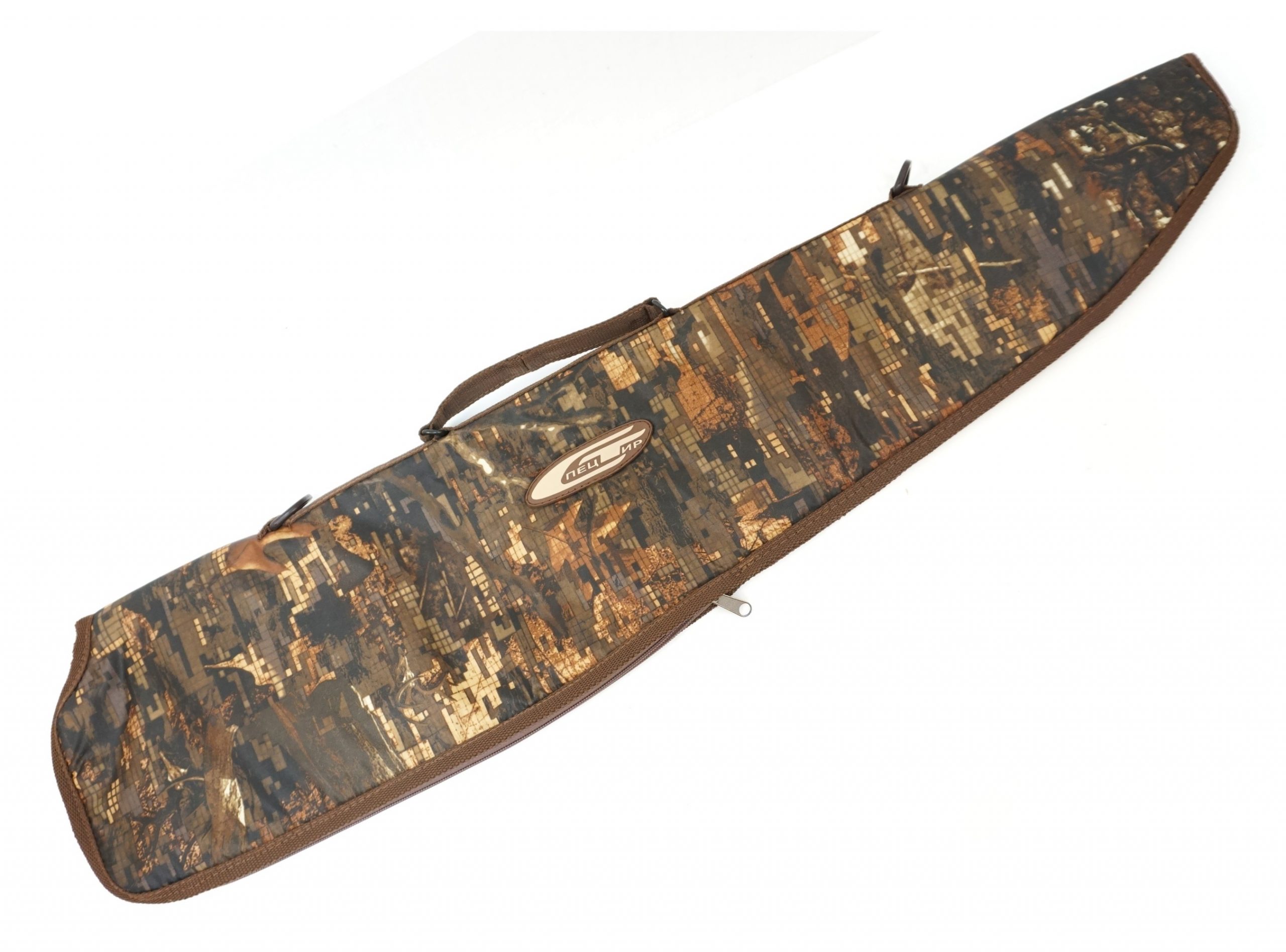 Данный чехол матерчатый, «лесной» расцветки, предназначен для транспортировки пневматической винтовки типа ИЖ-60/61. Кейс выполнен из водонепроницаемой синтетической ткани. Имеет ручки для переноски. Производитель: ООО «Хольстер», г. Ижевск.