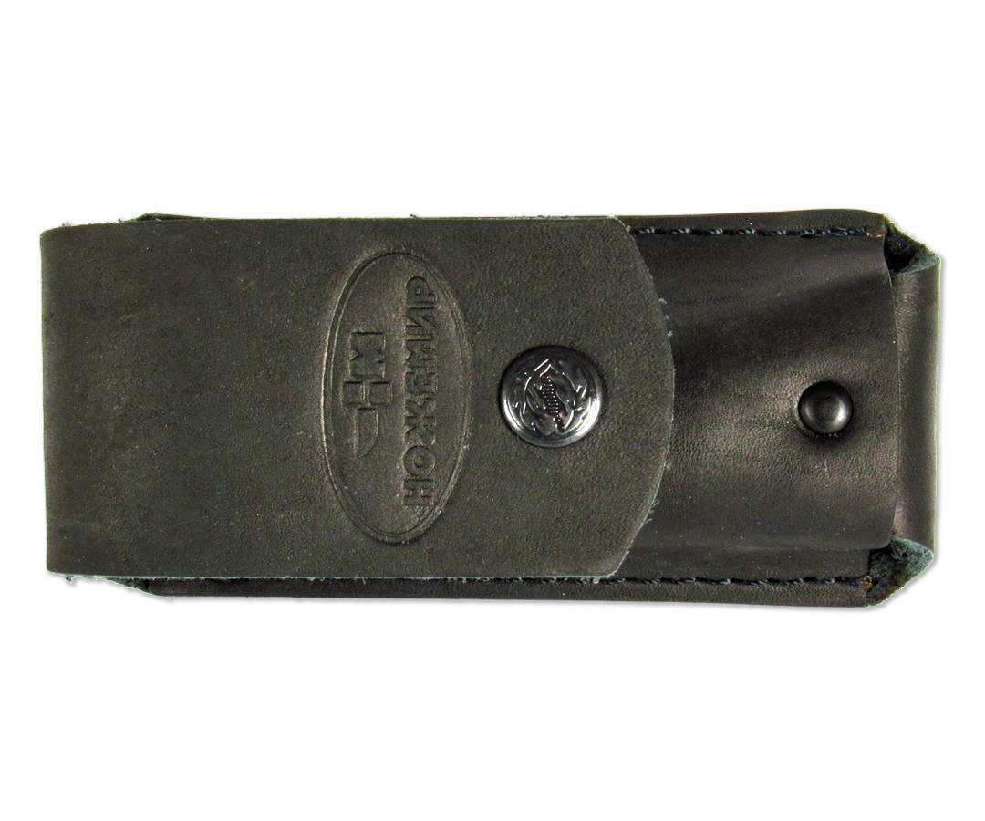 Чехол для складного ножа должен быть прочным, удобным в использовании и устойчивым к износу. Всем этим требованиям соответствует эта модель. Она выполнена в виде кармана с верхней крышкой-клапаном, закрывающейся на кнопку. Нож внутри располагается плотно, но свободно, чтобы его легко можно было извлечь. Специальные отверстия в нижней части обеспечивают отток случайно попавшей внутрь жидкости, а замена поперечного шва заклепкой снижает риск разрыва под весом содержимого. Снаружи на чехол нанесено клише с логотипом компании-производителя, который по желанию можно заменить на любой другой.
