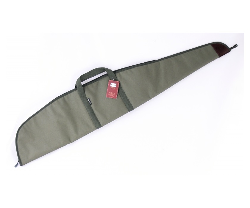 Чехол изготовлен из водонепроницаемой синтетической ткани. 3-х слойная конструкция. Внутри изделия тонкая амортизирующая прокладка. Пенопропилен, из которого изготовлена прокладка футляра, обладает высокой прочностью. Внутри чехла имеется карман для приклада из синтетического материала. Переноска футляра для оружия осуществляется ручкой или на плечевом ремне. Ручка и ремень изготовлены из прочной нейлононовой стропы (Paracord). Рукоятка кофра выдерживает большую нагрузку, так как лента прошита вокруг него. Нос чехла укреплен искусственной кожей (замшей). Изделие прошито прочными лавсановыми нитями, укреплено износостойкой синтетической тесьмой. В передней части есть петля для подвески (хранения). Длина внешняя 129 см, внутренняя 125 см.