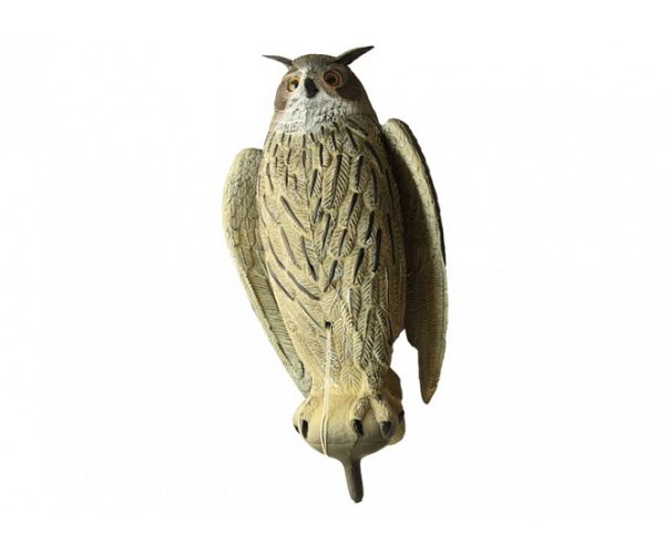 Филин — злейший враг ворон ночью, но практически беспомощен днем. Увидев днем сидящего филина, вороны собираются вокруг него большой стаей и принимаются атаковать.Чучело привязывается к ветке дерева. Несложное механическое устройство, расположенное внутри чучела позволяет приводить в движение крылья филина, если дергать за шнурок, который можно нарастить до необходимой длины. Движение крыльями делает филина еще более привлекательным для ворон.