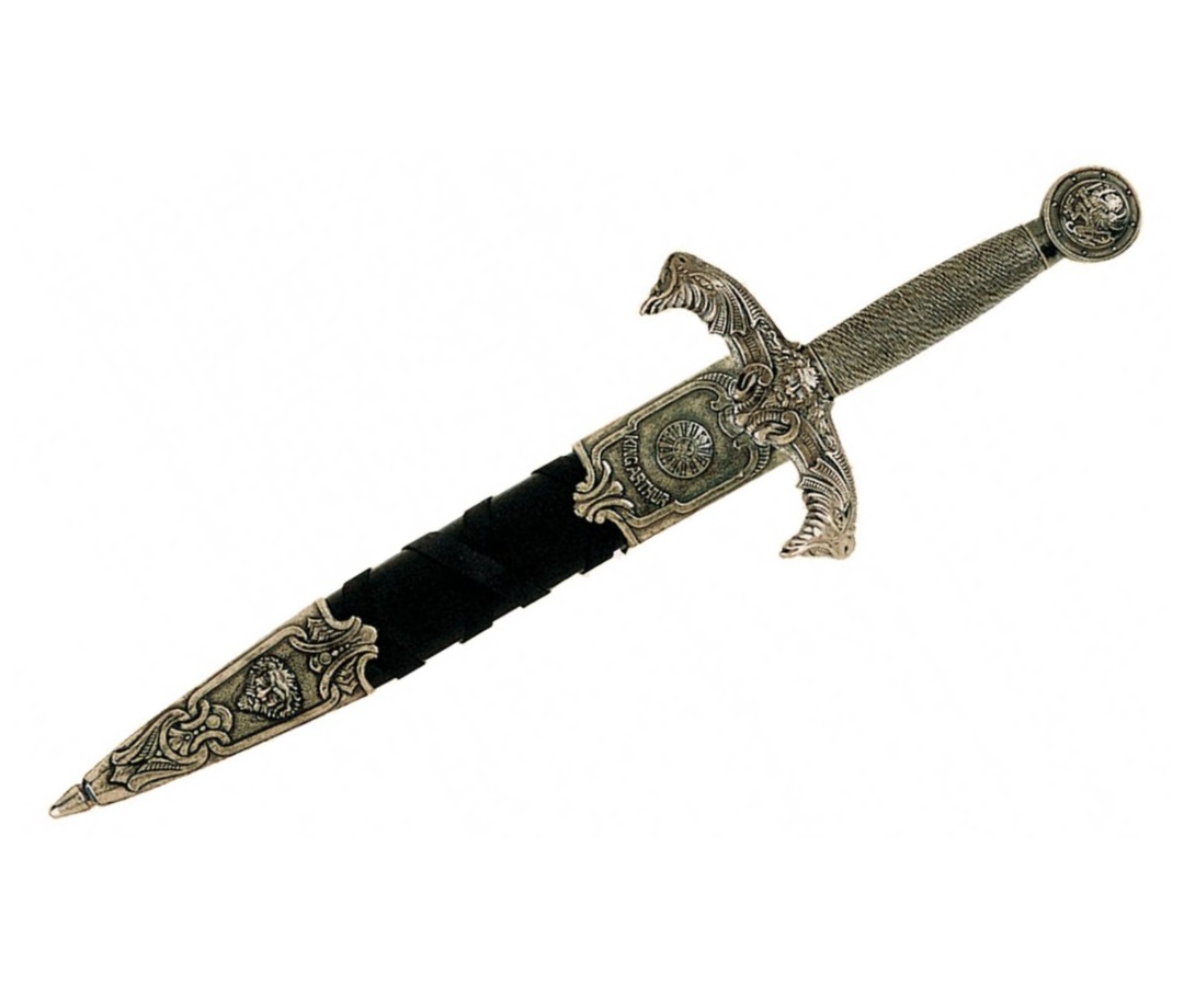 Макет дага короля Артура представляет собой прекрасно выполненную реплику холодного оружия, которым, возможно, пользовался король Артур – легендарная личность, вождь кельтов, живший в 5-6 веке. Король Артур является героем многочисленных эпосов и рыцарских романов. Историки до сих пор не уверены в реальном существовании короля Артура, однако, несомненно, эта личность имела своего прототипа. По другой версии, король Артур – собирательный образ, народ и авторы наделили его и рыцарей Круглого стола лучшими качествами.