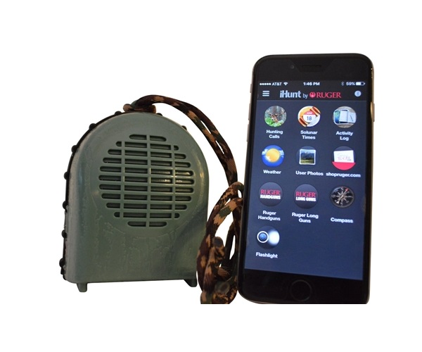 Динамик iHunt Extreme Dimension, подсоединяемый к устройству посредством беспроводной связи Bluetooth. Он превращает ваш смартфон, на котором установлено приложение iHunt от фирмы Ruger, в полноценный звукоимитатор для приманивания дичи. Приложение содержит более 600 звуков, издаваемых 47 видами животных и птиц. Охотник переключает звуки и регулирует их громкость со своего телефона. Динамик совместим с любым устройством на базе Android или iOS и может работать на удалении до 40м. от смартфона.