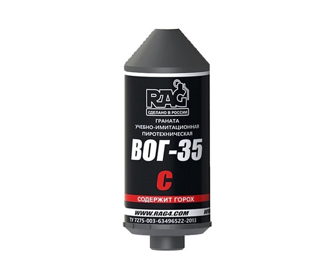 Граната учебно-имитационная пиротехническая отстреливаемая RAG ВОГ-35С является светозвуковой осколочной гранатой, применяется преимущественно при проведении военно-спортивных игр (страйкбол, пейнтбол). Для запуска изделия требуются специальные пусковые устройства, состоящие из пусковых гильз и имитаторов гранатомета.