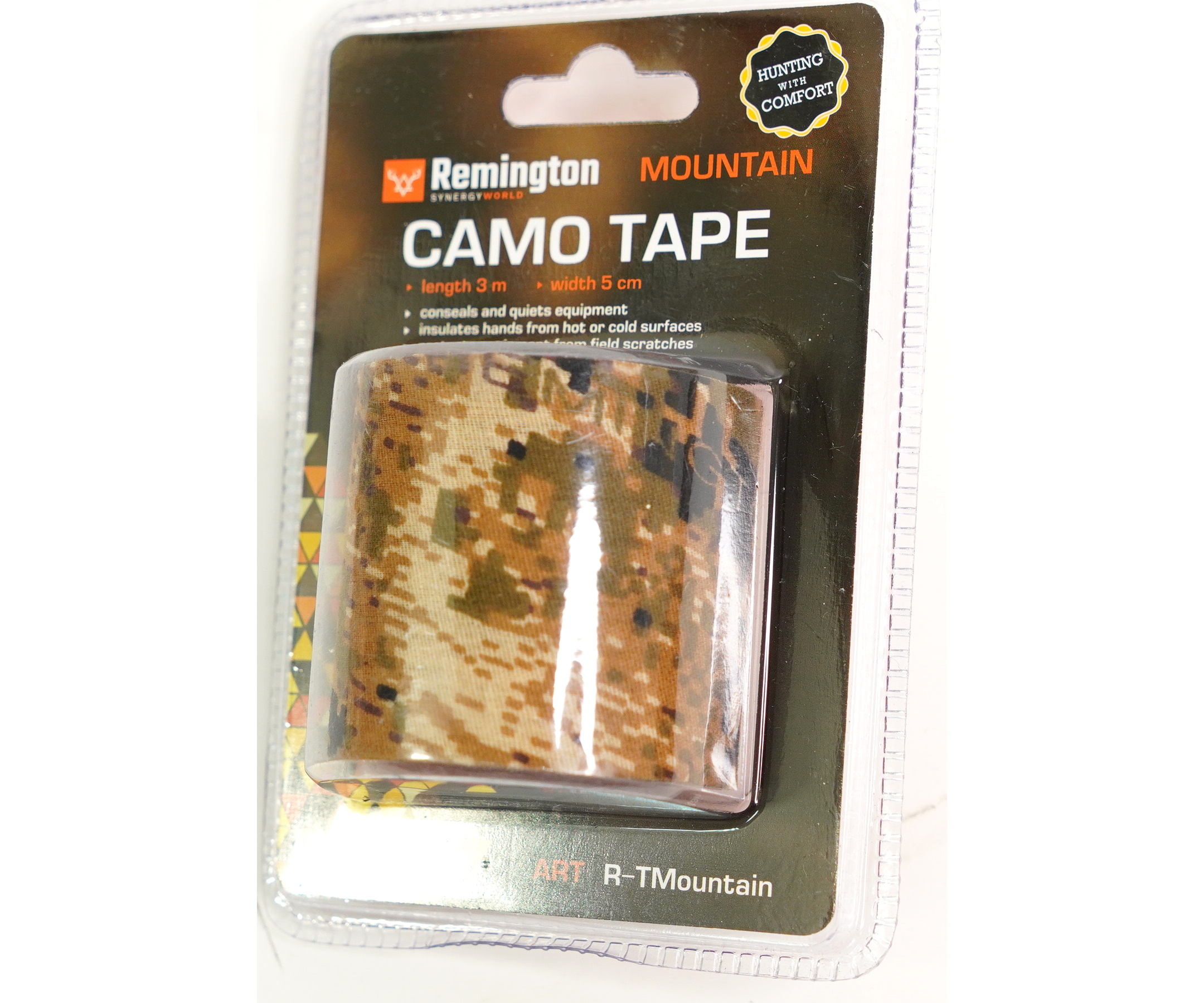 Многоразовая камуфляжная лента Remington Mountain применяется для защиты и маскировки ружей, оптических прицелов, биноклей, фонарей, ножей, фляг и другого снаряжения. Использование ленты позволяет избежать солнечных бликов от оружия, маскирует его, а также защищает от влаги, пыли, механических повреждений, царапин. Уменьшает шум при использовании и вероятность соскальзывания руки. Защищает руки от горячих и холодных поверхностей.