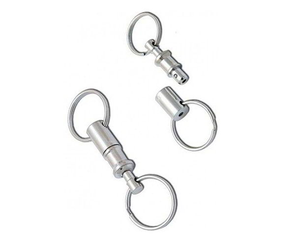 Никелированное устройство Victorinox 4.1835 для крепления ключей, складных ножей, стилетов, карманных фонариков и прочих предметов на аксессуарах и одежде. Приспособление изготовлено в виде двух плоских колец диаметром 23 мм, скрепленных между собой соединительным карабином, длина которого 40 мм. Устройство идеально подходит автомобилистам, охотникам, рыбакам и всем, у кого часто теряются мелкие предметы. Простое нажатие на карабин позволяет быстро отстегнуть одно кольцо от другого — отличный вариант, когда нужно взять ключи или иной предмет без снятия устройства.