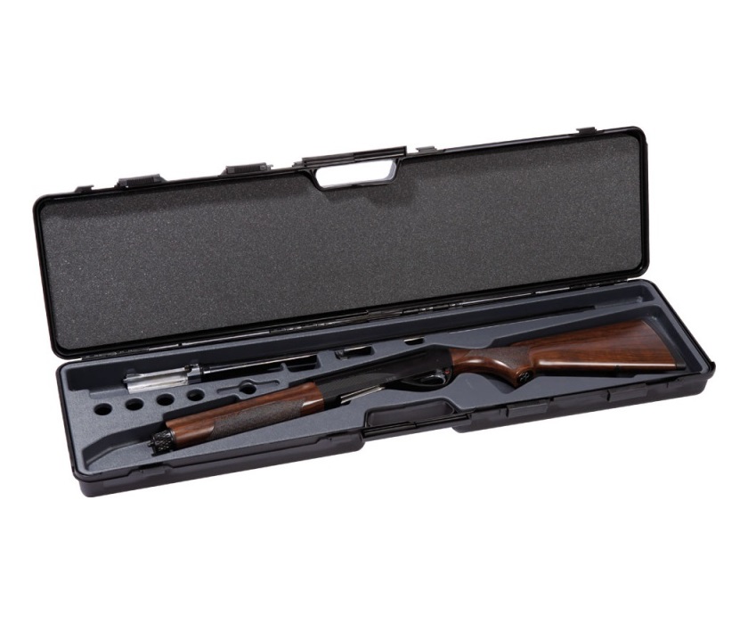 Изготовлен из пластика. Внутри( на верхней половинке) наполнитель – поролон. А в нижней половинке имеется специальная термоформа для удобного размещения оружия и аксессуаров в кейсе. Имеет 4 скользящих замка.