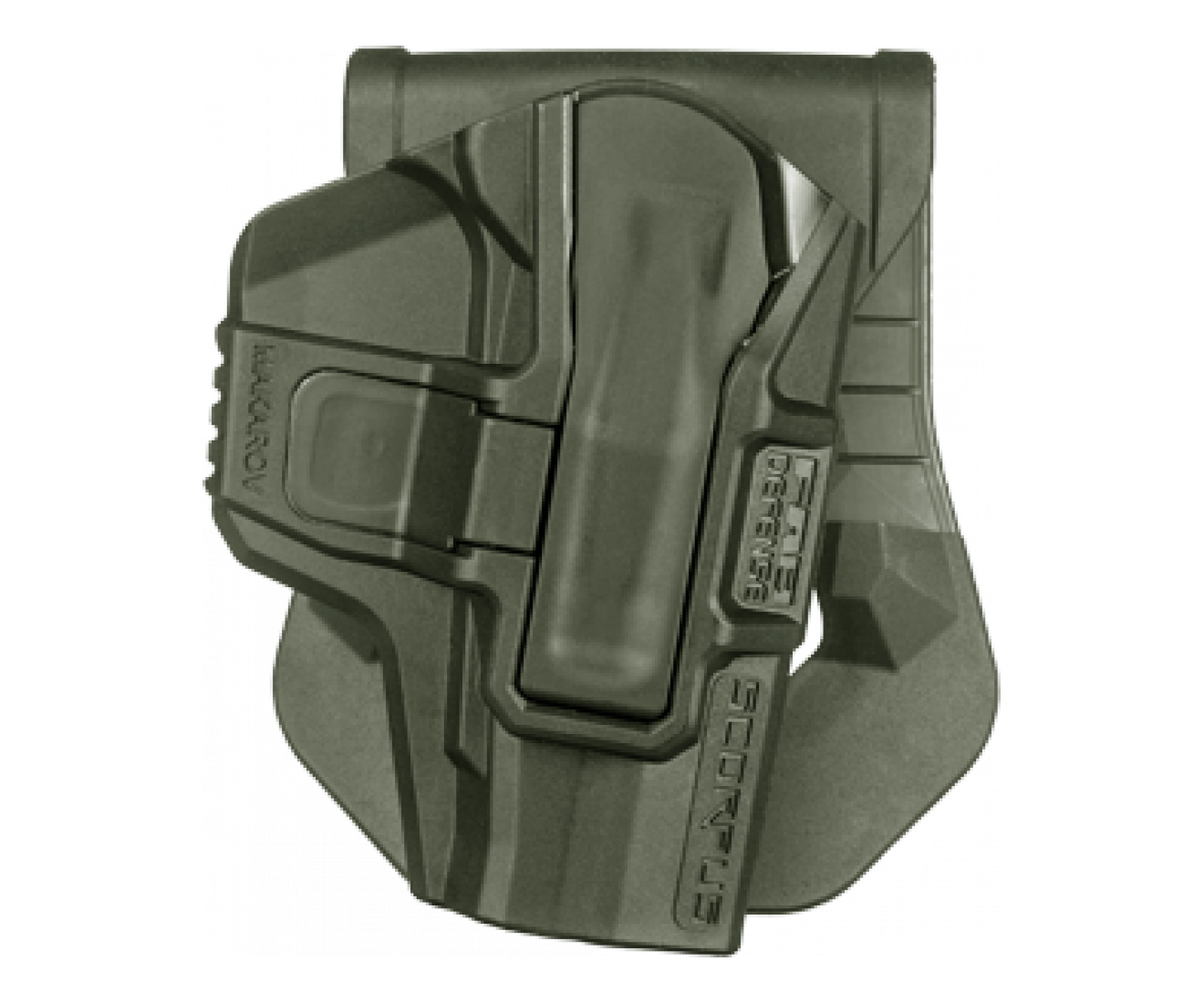 - Противоскользящий зажим обеспечивает плотное и надежное размещение оружия в кобуре;