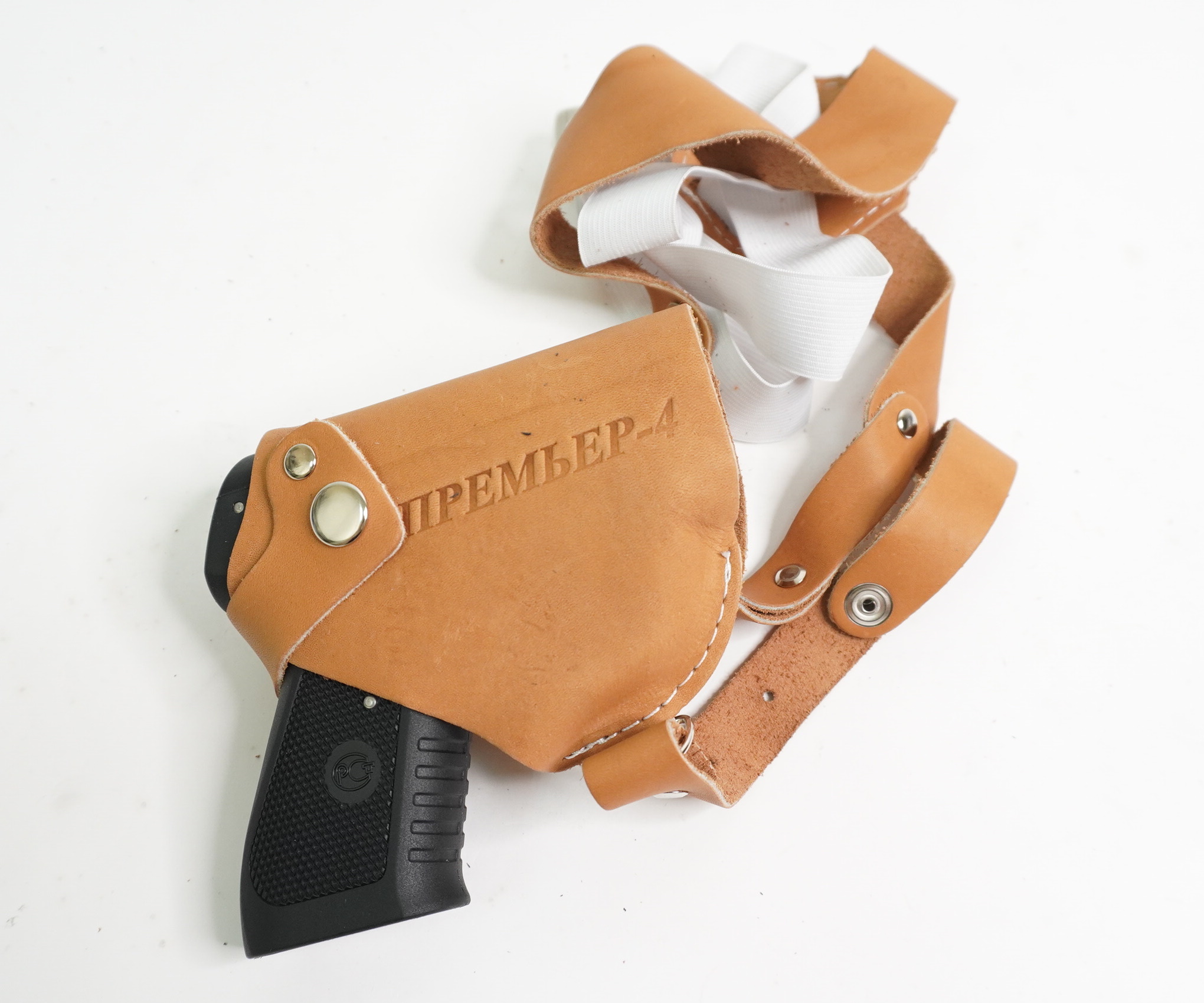 Данная оперативная кобура предназначена для ношения аэрозольного устройства (пистолета) «Премьер-4». Изготовлена из натуральной кожи юфть.