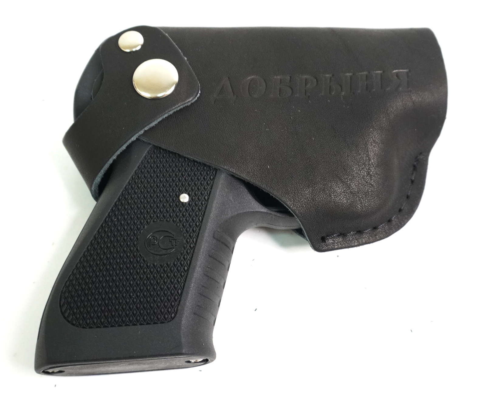 Данная поясная кобура предназначена для ношения аэрозольного устройства (пистолета) «Добрыня». Изготовлена из натуральной кожи краст.