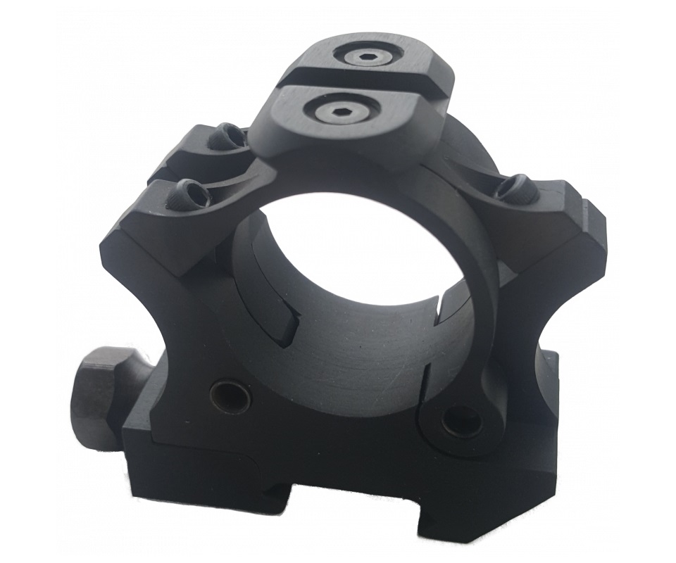 Кольца Тринити с диаметром на 30 мм быстросъемные, с винтовым зажимом на планку Weaver. Кольца оснашены верхней съемной планкой Weaver/Picatinny, для крепления фонаря, колиматора и т.д. Половинки колец крепятся к нижним при помощи трех винтов.