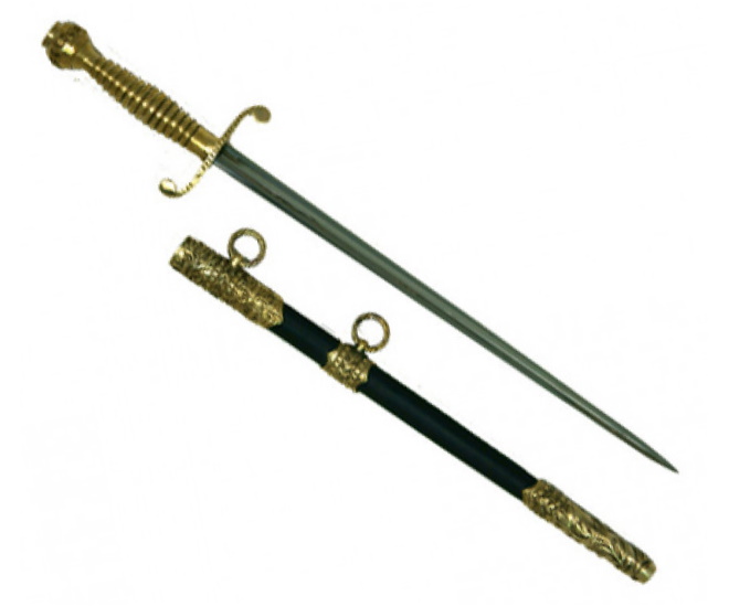 Клинок стальной прямой, четырехгранный, игольчатого типа. Клинок на 3/4 украшен изображениями на морскую тематику и маркирован «P. D. Luneschloss, Solingen». Эфес состоит из рукояти с головкой и латунной крестовины. Рукоять латунная, слегка утолщенная в средней части, обмотана по продольным желобкам витой латунной проволокой.