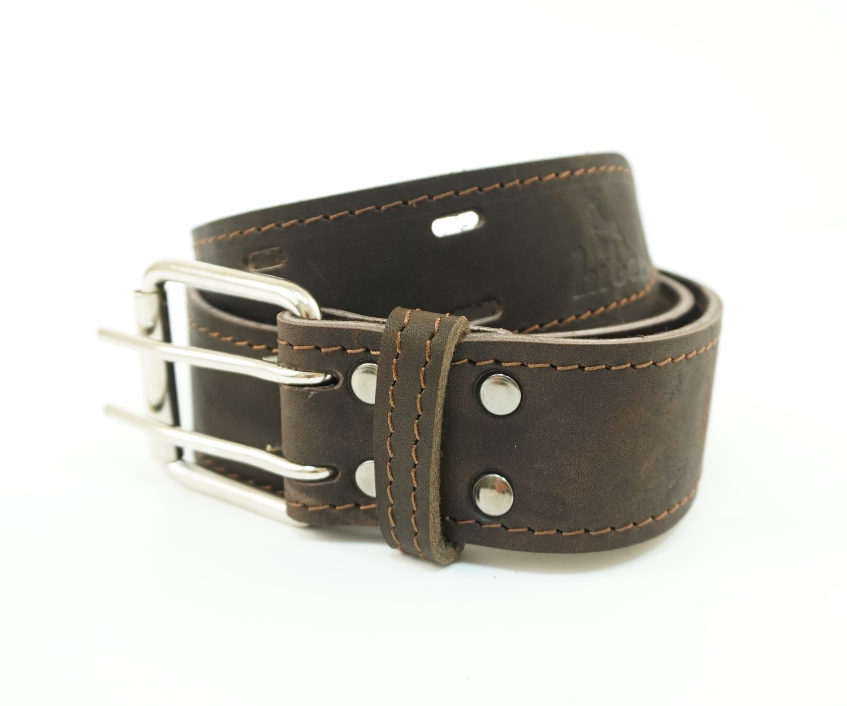 Кожаный ремень Hiter шириной 45 мм из натуральной кожи коричневого цвета. Прочный, надежный, крепкий. Прошит с обеих сторон, что увеличивает срок службы изделия и сохраняет надолго внеший вид. Материал пряжки — хром.