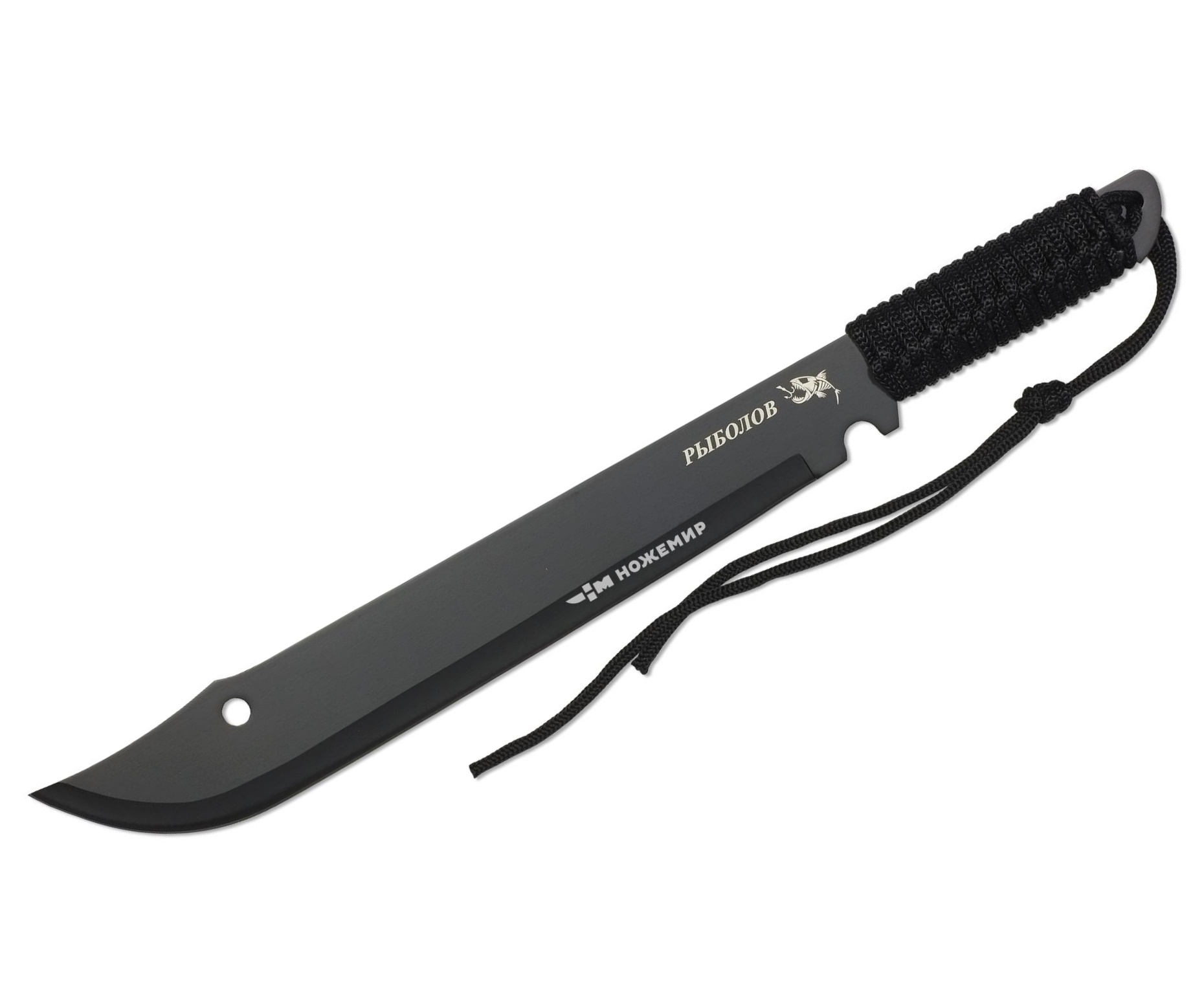 Такое мачете можно использовать в разделке рыбы – лезвие легко разрубает тушки, а его острый конец – распарывает и потрошит добычу. Для изготовления этой модели использовалась сталь 440, легированная хромом. В комплект входят прочные водонепроницаемые ножны из нейлонового полотна с креплением.