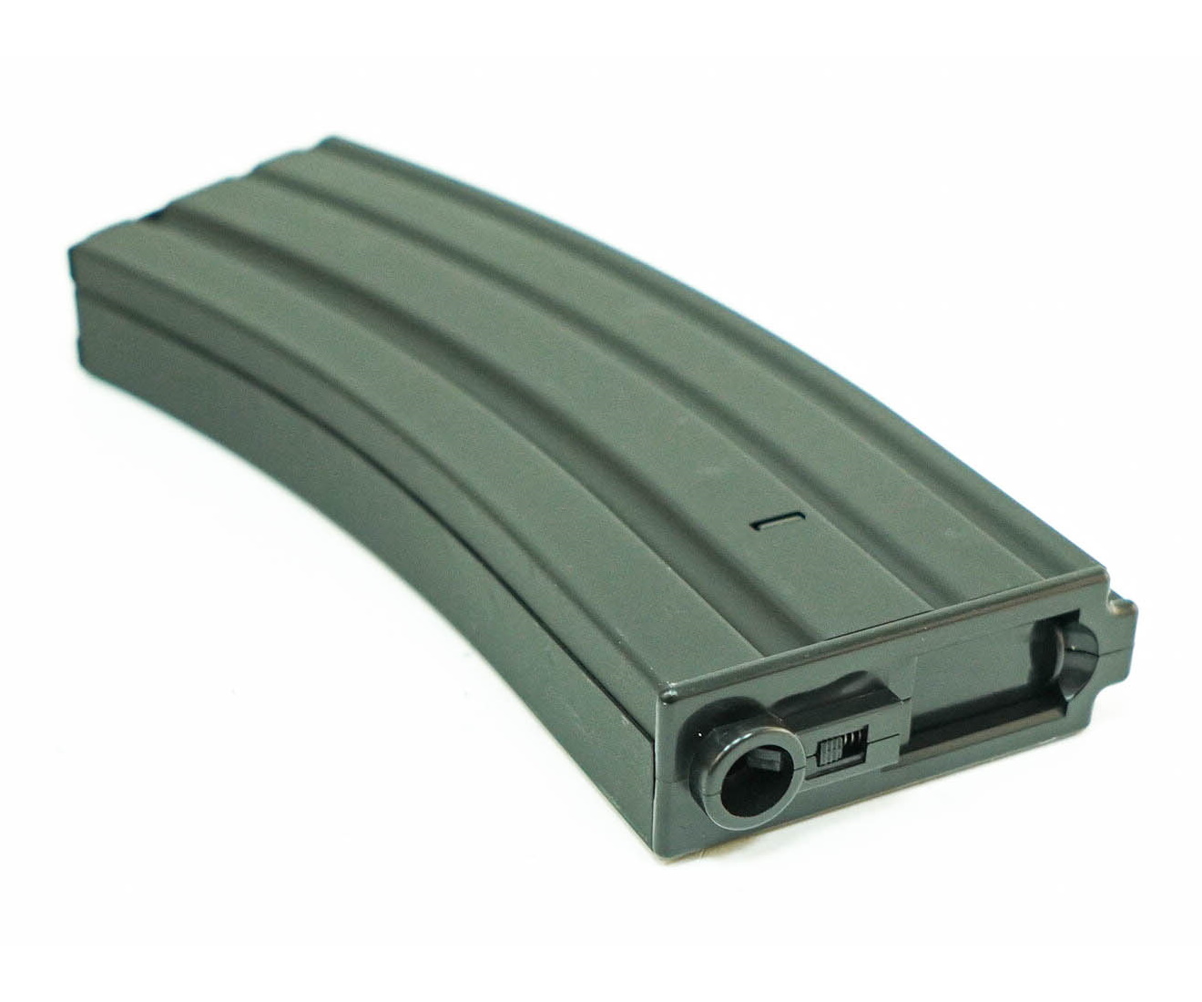 Бункерный магазин Cyma M001 для страйкбольных автоматов серии М4/М16 (и совместимых с ней). Изготовлен из металла и ударопрочного пластика. Вместимость – 450 шаров.