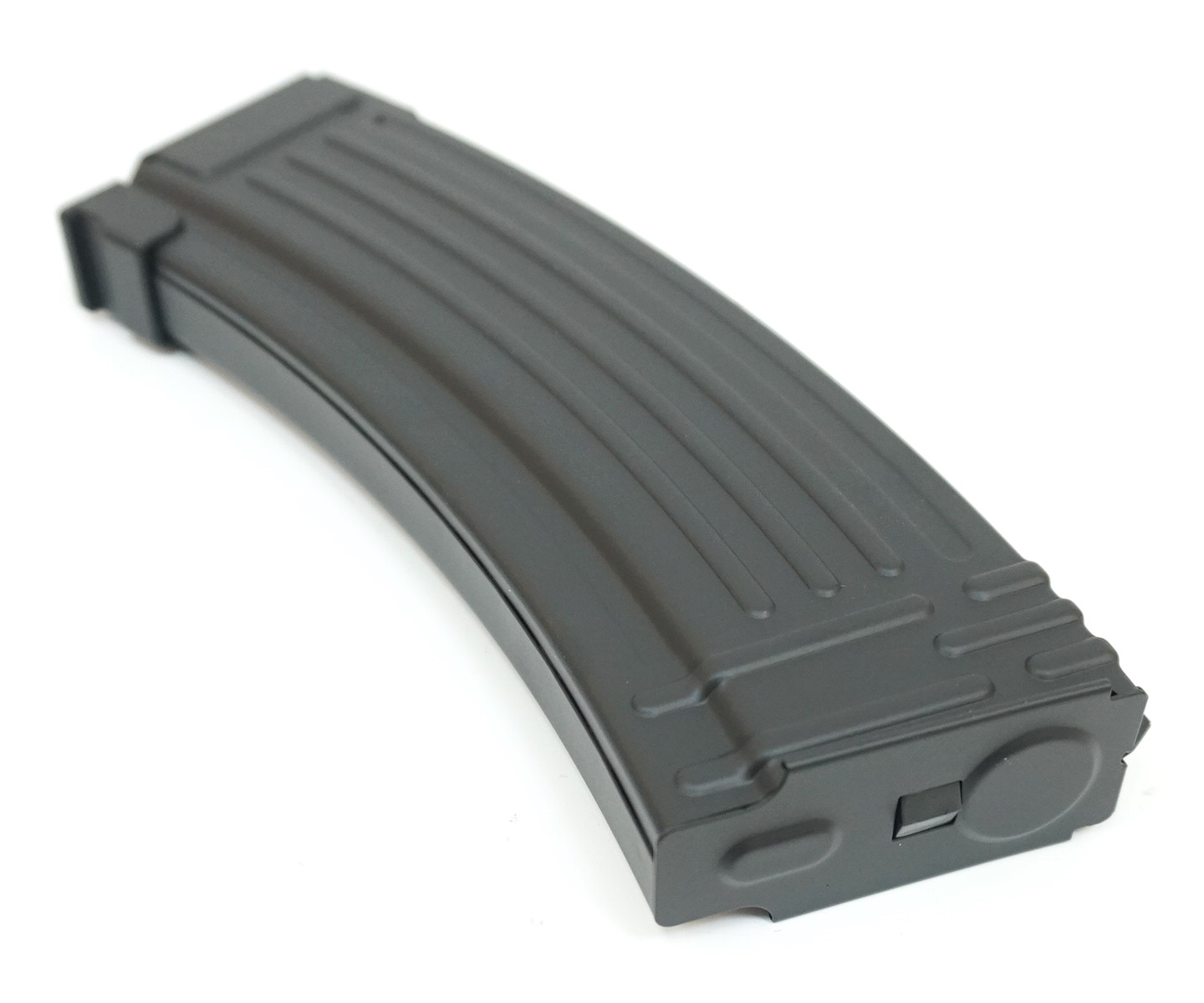 Механический магазин для приводов АК-серии от компании CYMA, Китай. Корпус изготовлен из металла, внутренности — из ударопрочного пластика. Имитирует магазин румынского производства под патроны калибра 5.45х39 (АК74С, АКС74У, АК74М и их восточноевропейские аналоги).