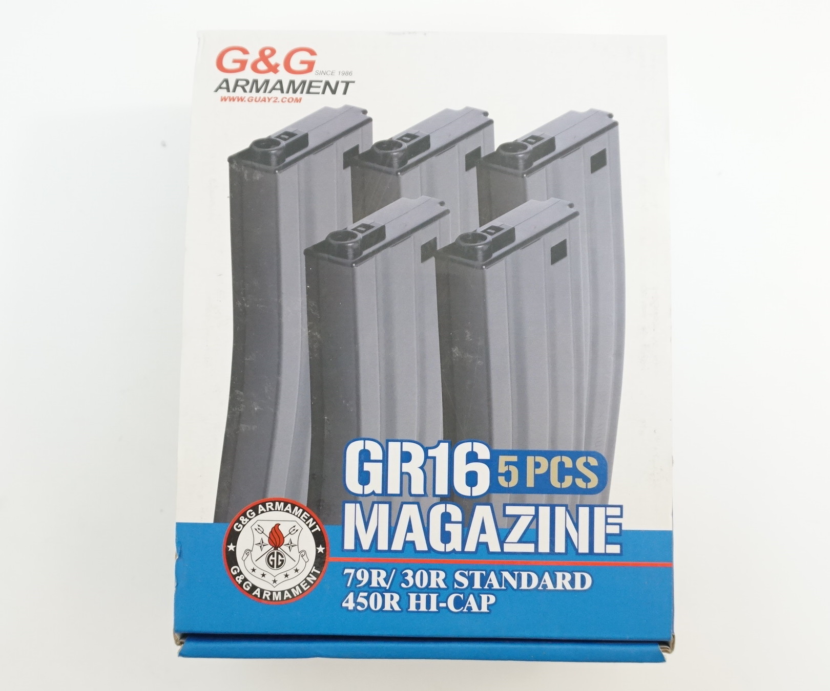 Магазин механический (5 штук) G-08-112 от компании G&G, Тайвань. Вместимость – 79 шаров. Магазин подходит для страйкбольных приводов серии M4-M16 (GR16). Корпус изготовлен из пластика серого цвета.