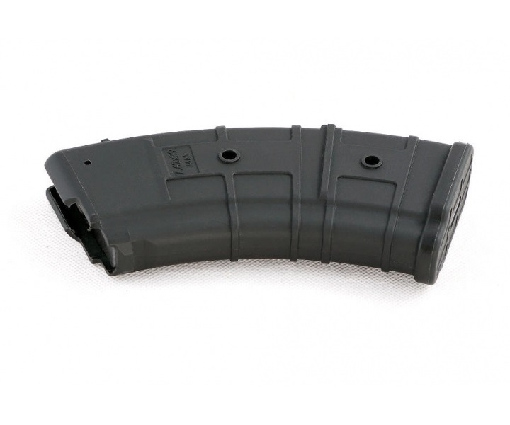 Магазин для Сайги М — произведен для спортсменов и охотников. Рассчитан на 20 патронов, но может быть уменьшен до 10, над местом возможного пропила имеет прилив для установки крышки.