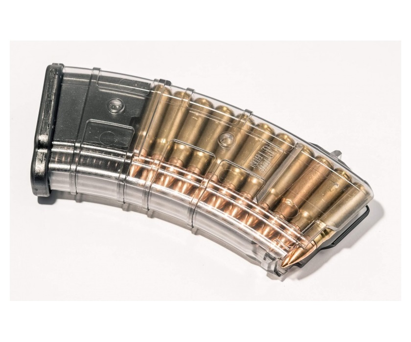 Прозрачный магазин для Сайги МК — в отличие от магазинов на АКМ имеет нарощенную переднюю стенку и тонкую защелку. Обладает высокими эргономическими показателями.