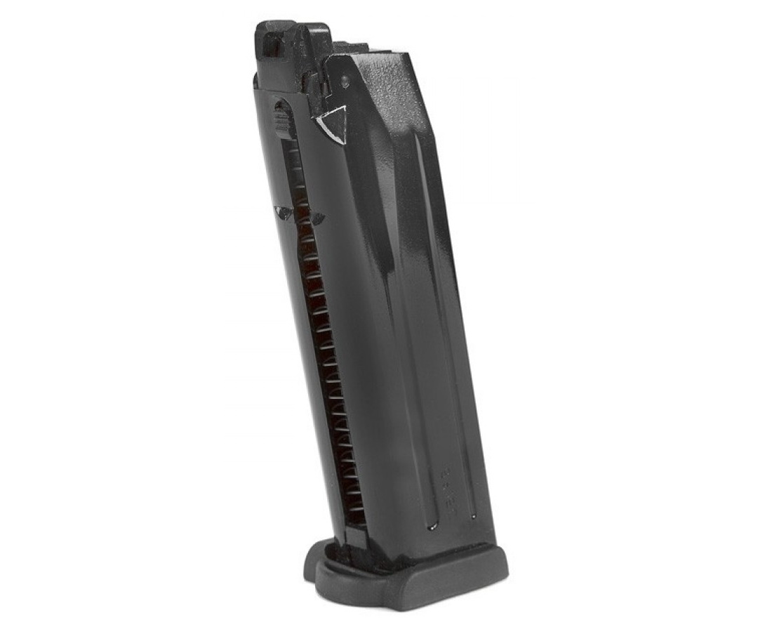 Запасной магазин для страйкбольного пистолета VFC HK VP9 (на грин-газе), вместимость составляет 22 шарика.