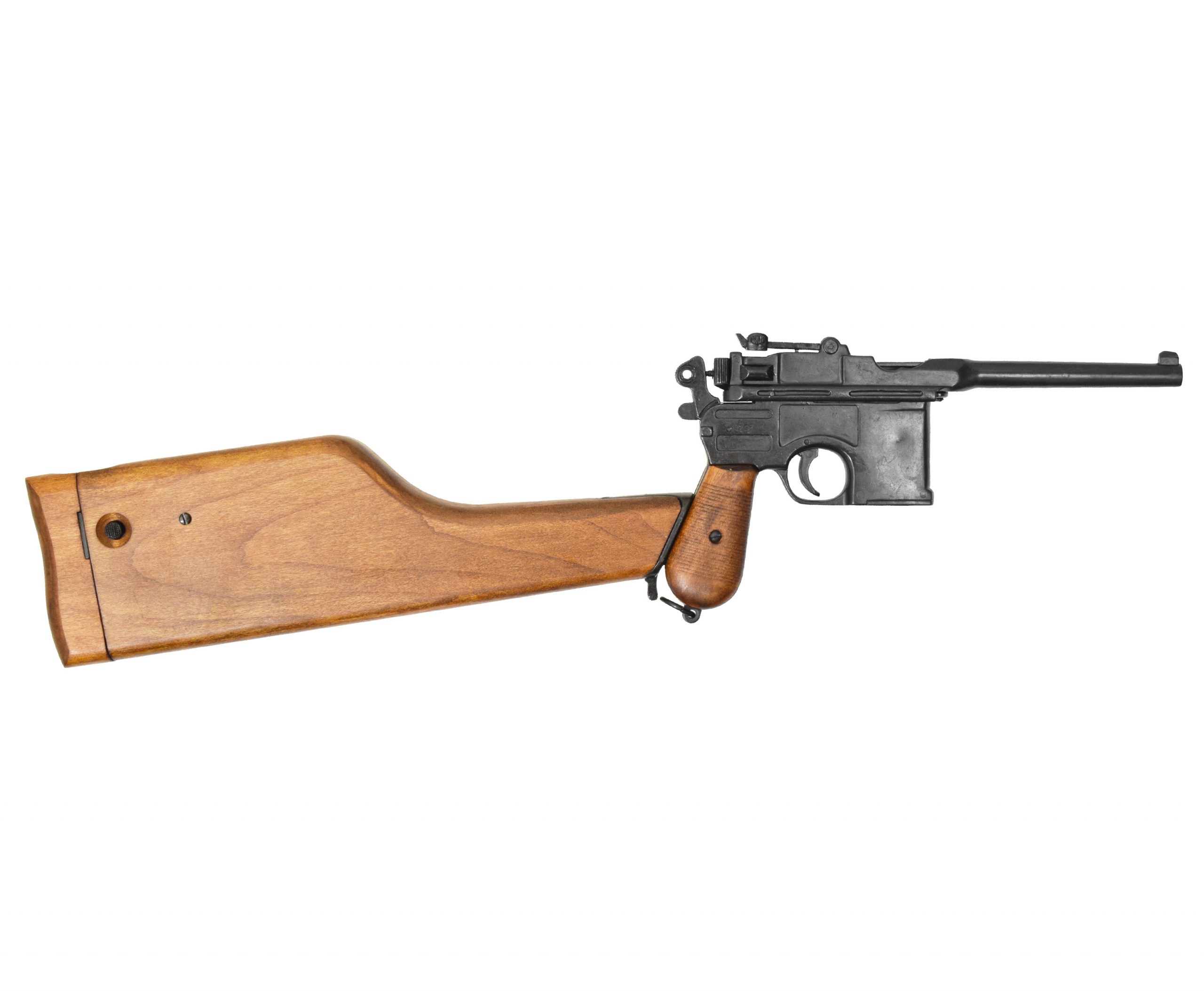 Макет пистолет Маузер, с деревянной кобурой-прикладом (Германия) DE-1025 – это изделие от испанского производителя, представляющее собой полноразмерную копию знаменитого огнестрельного оружия 20 столетия – Маузера С-96.