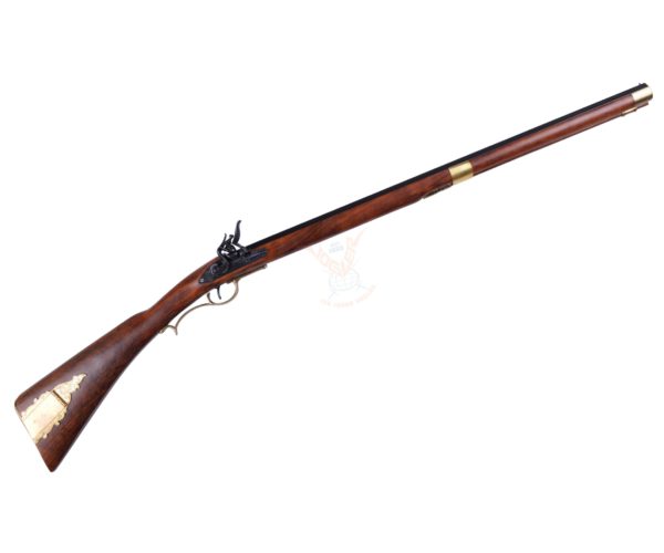 Макет винтовки Кентукки DE-1138 от испанской компании Denix представляет собой реалистичную копию этого легендарного кремниевого оружия, каждая деталь которой выполнена в точном соответствии с оригиналом. Как и многие оригинальные экземпляры, приклад этой копии украшен красивой металлической накладкой с гравировкой. Спусковой крючок можно нажимать, это делает оружие еще более реалистичным. Естественно, макет винтовки Кентукки на рассчитан на стрельбу, но благодаря этому приобрести такой великолепный экземпляр могут все желающие. Длина винтовки составляет 1,11 м, для своих габаритов модель достаточно легкая – всего 1,75 кг.