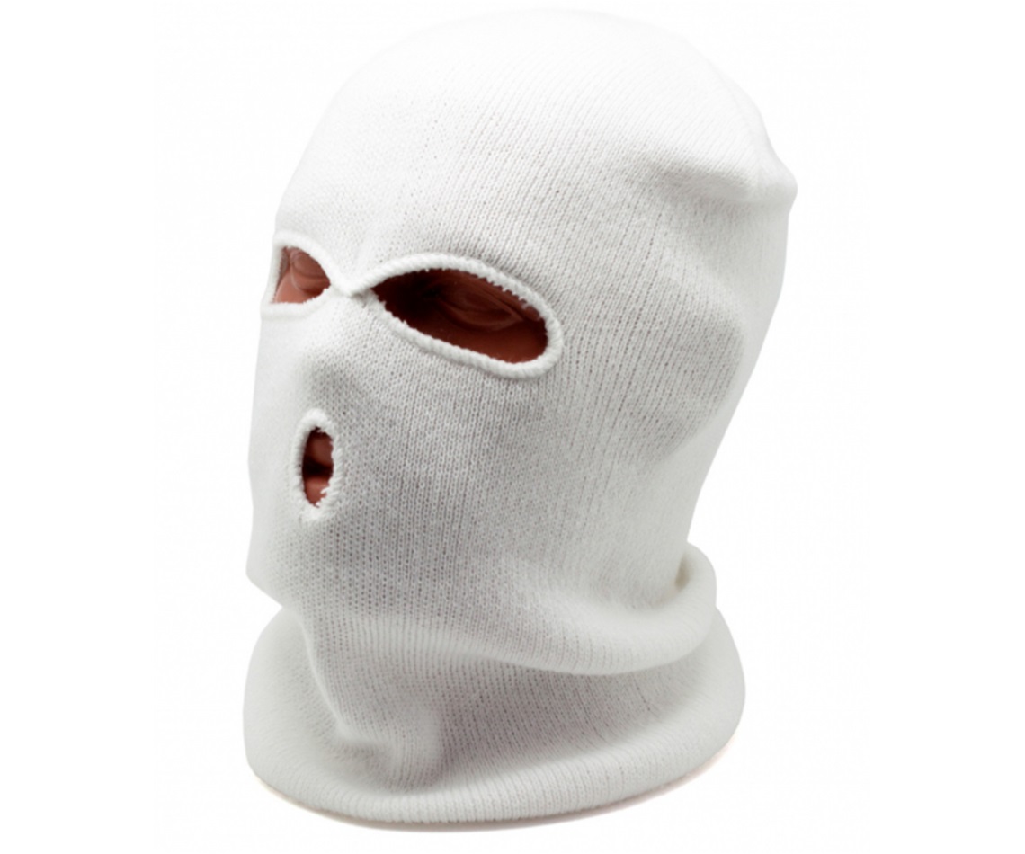 Маска-балаклава вязаная теплая демисезонная белого цвета. Предназначена как для защиты лица и шеи от ветра и пыли, так и от холода и снега. Отлично подходит в качестве подшлемника.