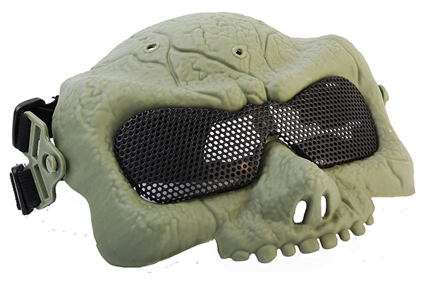 Маска защитная страйкбольная. Защищает верхнюю половину лица. Корпус сделан из высококачественного высокопрочного пластика. Линзы сделаны из стального листа, обработанного перфорацией. Имеются отверстия для дыхания, диаметр которых меньше, нежели диаметр страйкбольного шара. Внутри у маски 2 смягчающие вставки: в области носа, а также в районе лба.