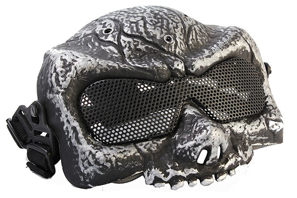 Маска защитного типа для игры в страйкбол. Она обеспечивает надежнейшую защиту лба, верхней части лица и головы. Прочный пластик использован в масочном корпусе. Линзами является перфорированный лист стали.