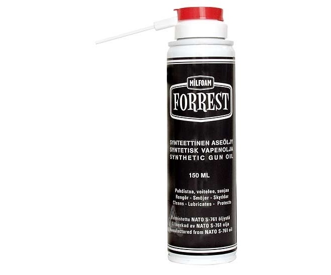 Главная Аксессуары и ЗИП для пневматики Оружейная химия (масла) Milfoam (Финляндия) Масло Forrest Synthetic для оружия, для чистки, защиты и смазки оружия, 150 мл, аэрозоль