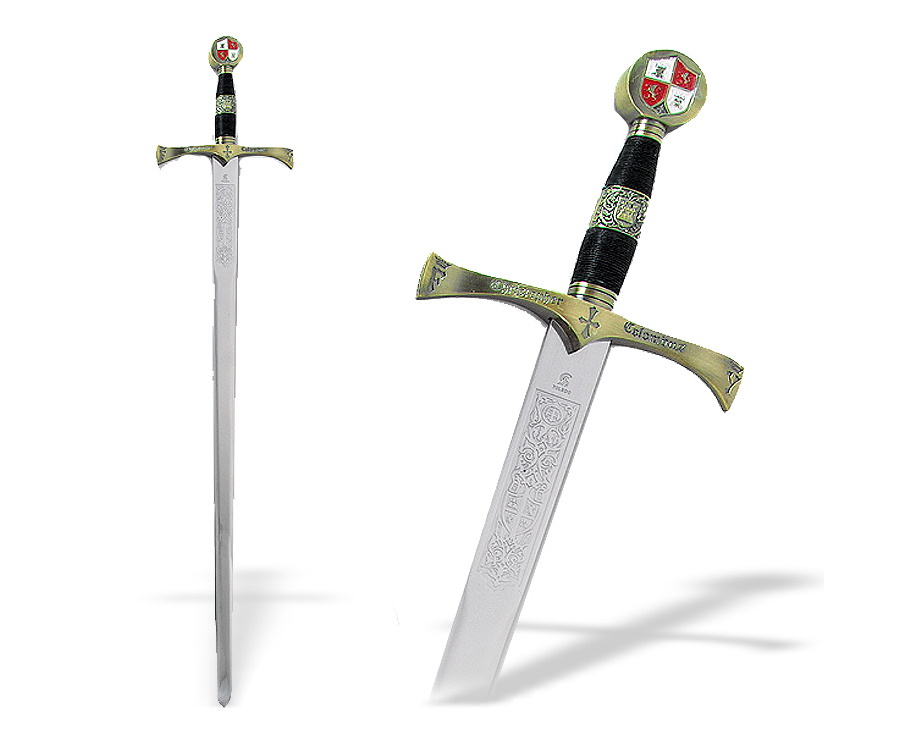 Исторический меч Христофора Колумба (Christopher Columbus Sword). На мече изображены гербы Кастилии и Леона. Эти геральдические знаки также изображены на гербе самого Колумба. Имя знаменитого исследователя нанесено на рукояти меча, а слова разделены католическим крестом. На испанском стальном клинке выгравированы геральдические узоры флёр-де-лис, львы и т.д.