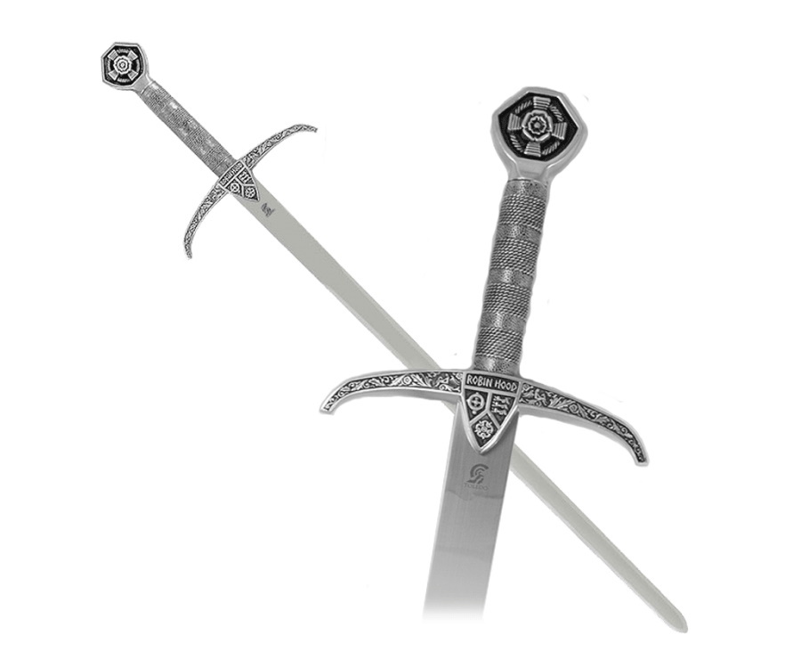Копия меча Робин Гуда (Robin Hood Sword). Известен как покровитель бедных и угнетенных. Смелый, разговорчивый и жизнерадостный, Робин Гуд всегда был верен своему господину королю Ричард. Робин из Локсли был в течение долгого времени героем романтической народной поэзии, оперных романов и фильмов.
