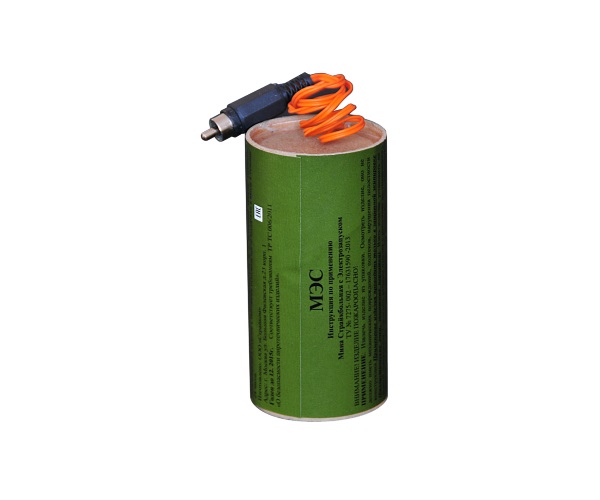 Мина страйкбольная МЭС представляет собой картонный цилиндр зеленого цвета с тонким токопроводящим проводом от пиротехнического электровоспламенителя. Вес наполнителя составляет 110 грамм, что в соотношении с мощным пироэлементом обеспечивает дистанцию поражения до 25 метров и зону сплошного поражения не менее 5 метров. В конструкции не используются металлические части и материалы при срабатывании образующие острые кромки.