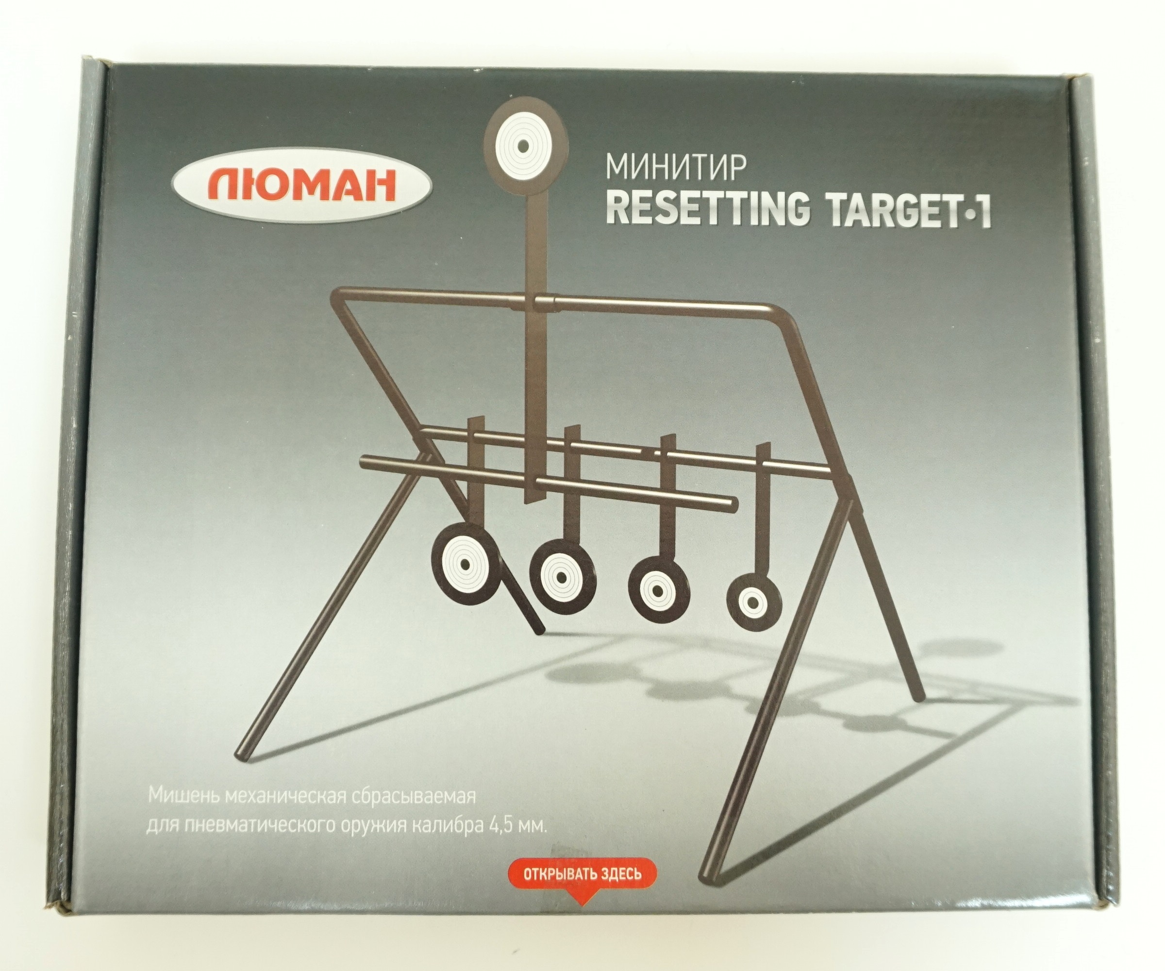 Минитир «Resetting Target-1» представляет собой набор из 5 металлических медальонов (диаметром 48, 42, 36, 30 и 24 мм) с механизмом, который обеспечивает дистанционный сброс и восстановление исходного положения мишеней.