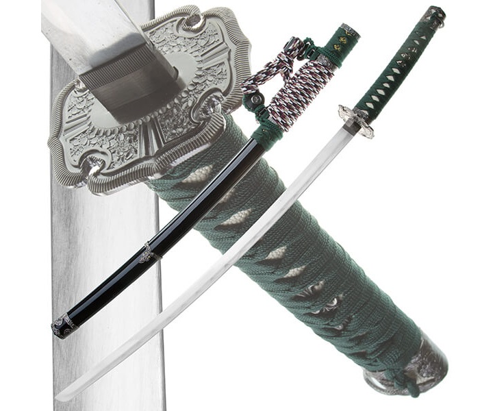 В восприятии тачи важна каждая деталь. Наиболее уважаемые самураи обязаны были иметь не менее десятка отменных клинков, которые обязательно должны были отличаться друг от друга формой, цветовой гаммой ножен и рукоятей. Поэтому даже такое пустяковое на первый взгляд отличие как цвет оплётки имел жизненно важное значение. У самураев существовало немало признаков, чтобы определить настрой оппонента по его одежде, мечу, месту где он лежит и внешнему виду самого тачи. Эта модель имеет оплётку из зеленого шнура. Кстати, на один меч уходило до 4 метров шелкового шнура.