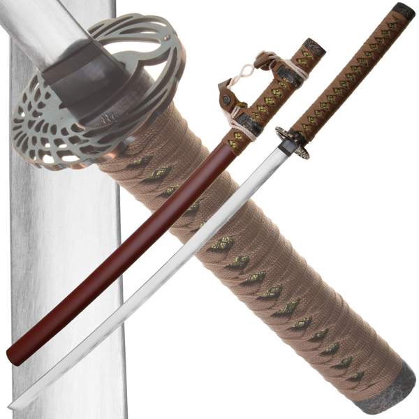 Тачи (или «тати») – это длинный японский меч, который носили не за матерчатым поясом кимоно, а на нём, подвешивая его в специальной перевязи. Именно для тачи была придумана оплётка на ножнах. Она была призвана защитить ножны тачи от повреждения металлическими доспехами. Это уже знакомая нам модель Tsuru, поставляемая отдельно от набора.