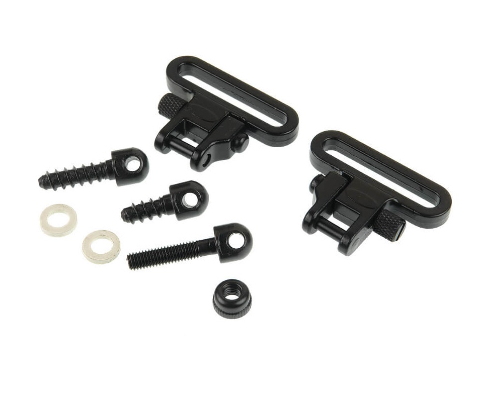 Далее следует вставить ось антабки в крепление на оружии, вернуть скобу на место и завернуть винтовую головку до упора. Антабки не подвержены коррозии, устойчивы к перепадам температуры и неблагоприятным погодным условиям.