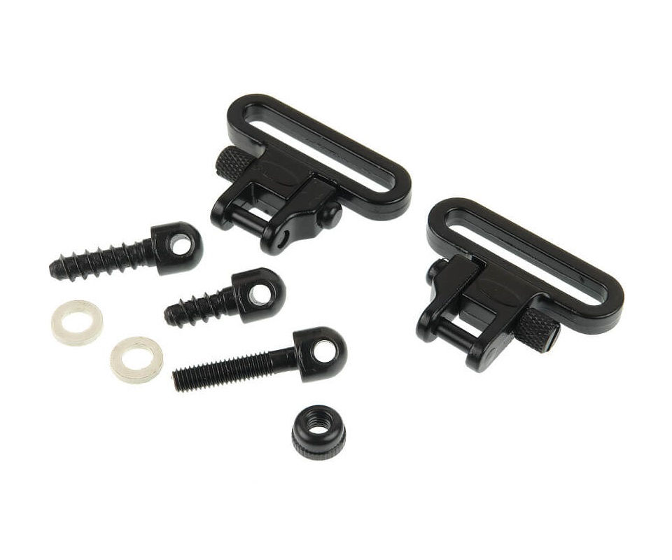 Далее следует вставить ось антабки в крепление на оружии, вернуть скобу на место и завернуть винтовую головку до упора. Антабки не подвержены коррозии, устойчивы к перепадам температуры и неблагоприятным погодным условиям.