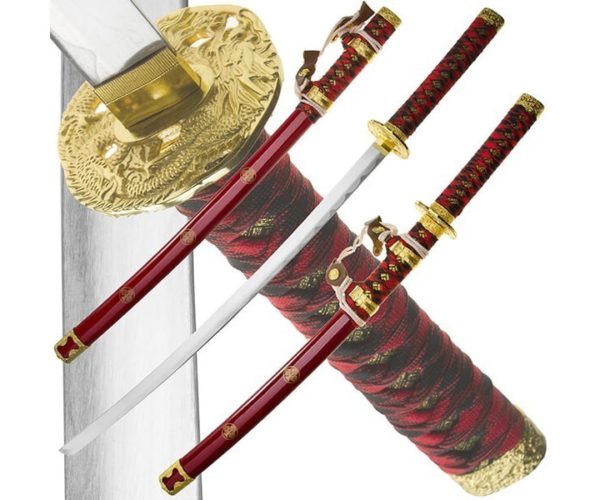 Комплектация (?): модель меча катаны с ножнами, модель меча вакидзаси с ножнами, стенд — подставка