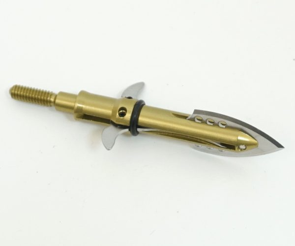 Это двухлезвенный охотничий наконечник с раскрывающимися серповидными лезвиями, а также плоским лезвием спереди. Лезвия открываются в момент контакта с целью и оставляют очень широкий раневой канал.