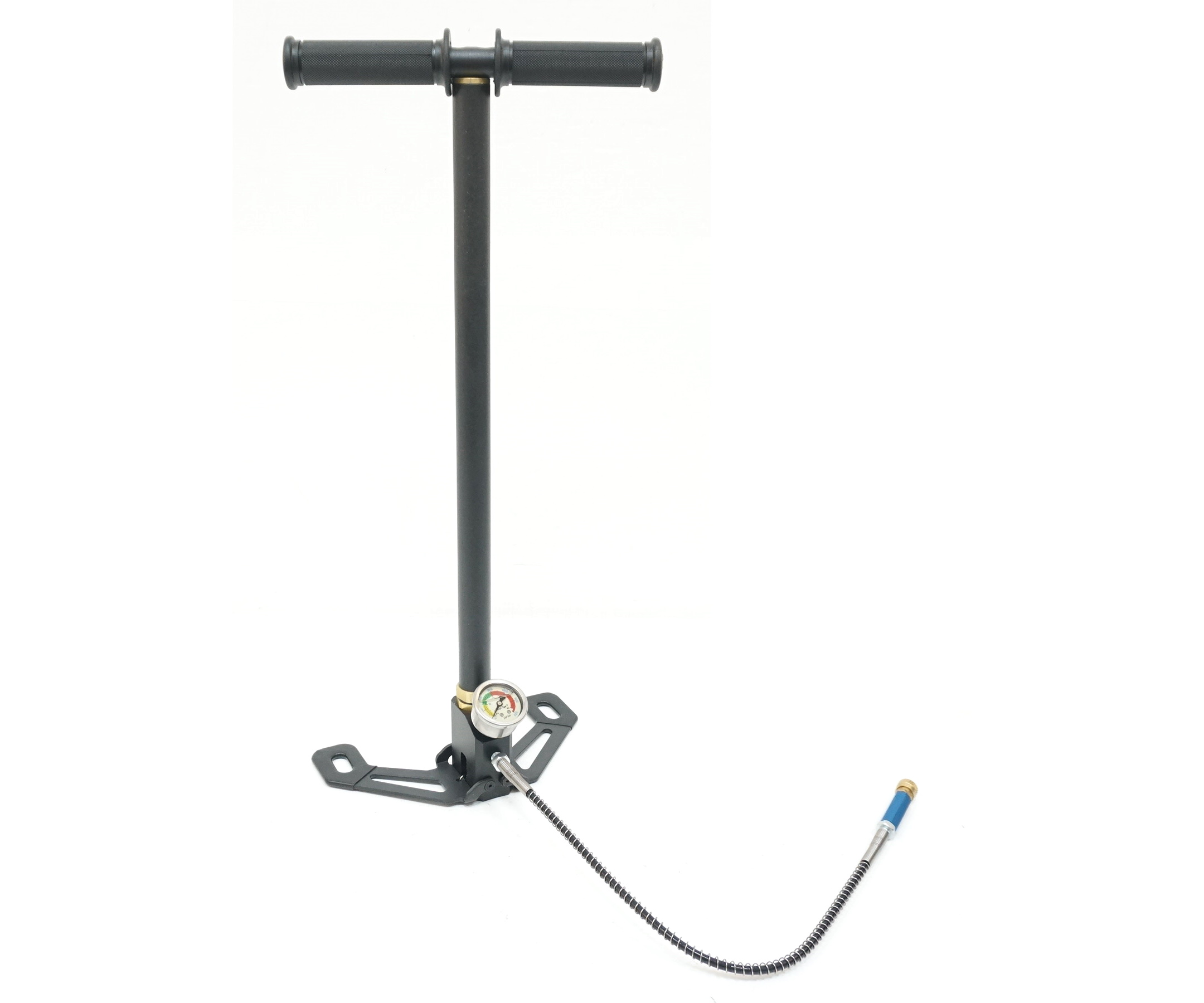 Насос разборный, с него можно открутить рукоять и складную подножку, это позволяет удобно транспортировать его и хранить. В комплекте с насосом высокого давления поставляется ЗИП, силиконовая смазка для штока и фильтры осушители. Шланг ВД заключен в металлическую оплетку, которая надежно защищает его от повреждений. На конце шланга разъем под квик-коннектор, для крепления резьбовых штутцеров необходимо докупить переходник.