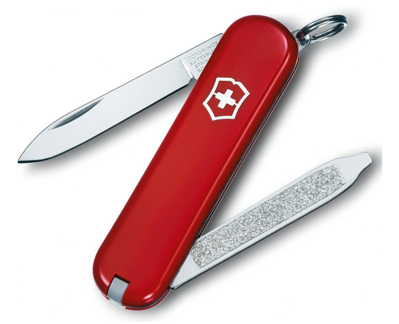 Victorinox Escort, 58мм — это миниатюрка одного из самых узнаваемых ножей Швейцарии. Он выглядит стильным и слишком заметным, это не позволит ключам потеряться. Этот нож не только очень удобный, но и к тому же многофункционален и практичен. Нож с брелком имеет небольшой клинок, пилочку для ухода за ногтями, пинцет, зубочистку и колечко для ключей. Швейцарский нож обладает отличным качеством, не зря производитель дает пожизненный гарантийный срок на товар. Нож имеет рукоятку красного цвета, которая создана с глянцевым нейлоном. Модель 0.6123 одна из самых востребованных и имеет большую популярность.