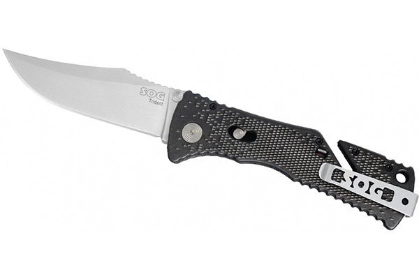 Это нож, который придется по душе всем любителям туризма, активных видов отдыха, а также любителей подышать свежим воздухом. TF-2 Trident — это уникальный нож полуавтоматического типа. Он имеет весьма большие габариты, однако радует прочностью, удобством и функционированием. Он надежен, долговечен, хорошо избегает износы. Хорошее впечатление остается и от использования массивной пластиковой ручки, которая мало чем уступает в прочности или презентабельности. За счёт фактурности пластика обеспечивается предотвращение скольжения ножа в руке. Таким ножом можно удобно сделать нарезку овощей, разделать мясо или рыбку.