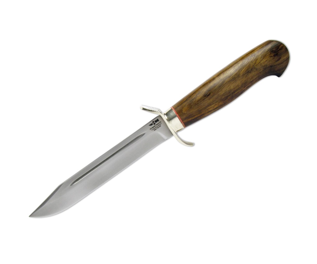 Прообразом модели стал знаменитый нож НР-40, востребованный среди разведчиков в период ВОВ. Точная реплика повторяет не только геометрию, но оформление легендарного оружия. Быстрорежущая сталь клинка прочна и универсальна, что позволяет использовать нож для разделки дичи, приготовления пищи, решения бытовых задач. Особенно популярно изделие в охотничьей и рыболовецкой среде.