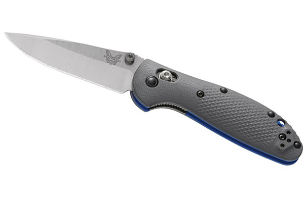 Benchmade 556-1 — это малогабаритный нож складного типа, имеющий клинок из твердой стали CPM-20CV. Это почти похожая сталь на австралийскую Böhler M390, однако, тут производителем является США. Главные достоинства клинка — это отличное противодействие коррозии, острая кромка лезвия. Рукоять имеет серый цвет, материалом для нее выступает стеклотекстолит G-10. Типом режущей кромки лезвия является Plain. Клинок можно удобно извлекать любой рукой, так как для этого на рукояти имеются две шпеньки.