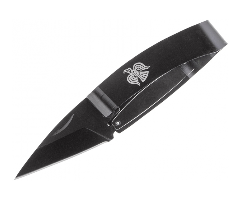 Средневековые короли и князья часто украшали свои знамена и штандарты изображением ворона (Ravn). Два ворона, Хугин и Мунин, приносили своему повелителю Одину известия со всего света. Сидя на плечах Одина, они нашептывали ему новости и мудрые советы. Marser Ravn – это нож-клипса для денег. Совершенно черный, с одной стороны украшен каноническим изображением ворона, с другой – германским узором. Нож эффектно смотрится, упакован в блистер в полуоткрытом виде.