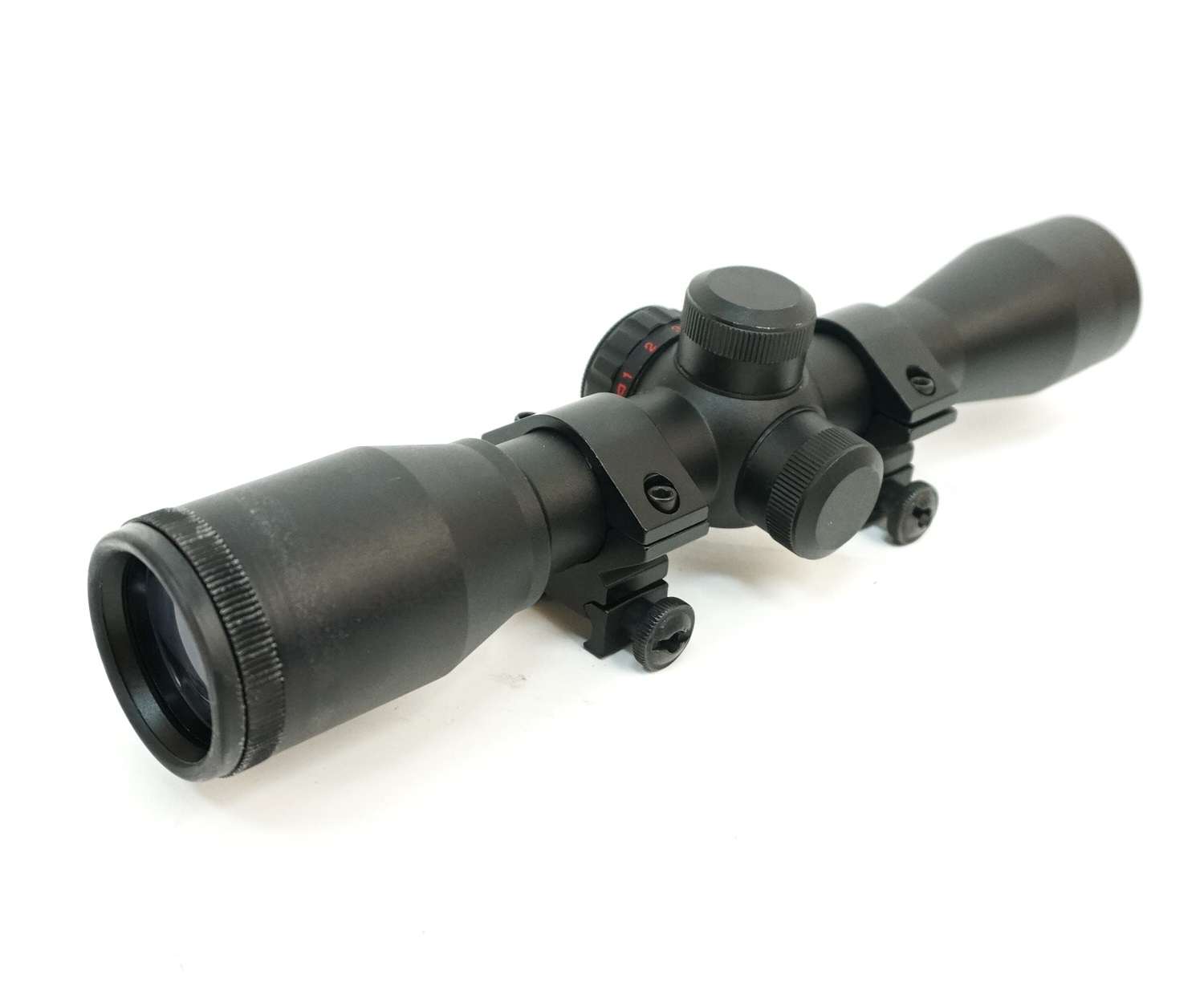 4-х кратный прицел, оборудованный специальной арбалетной сеткой. Имеется подсветка красного и зеленого цвета. Кольца под планку Вивер.