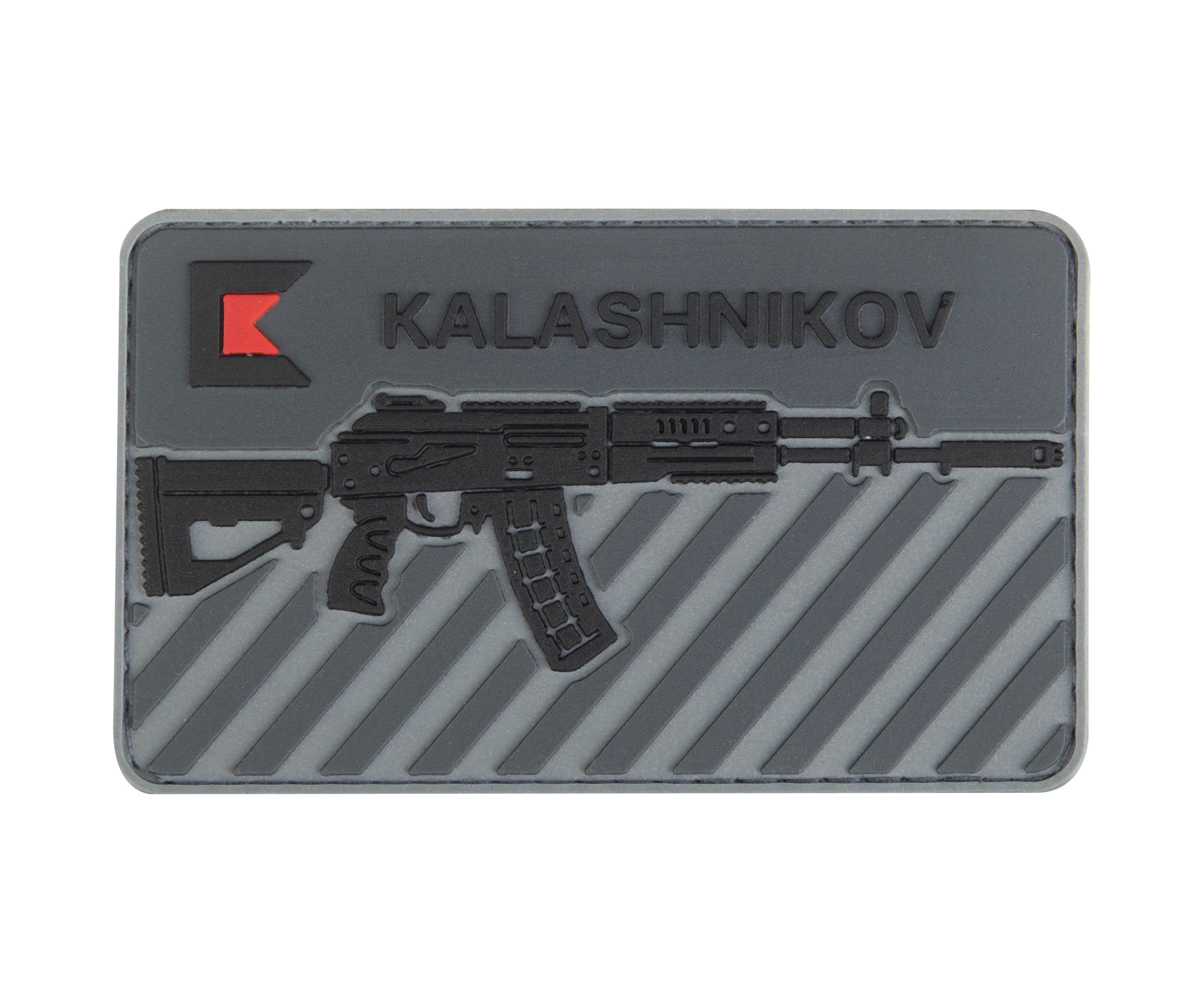 Фирменный шеврон Калашников с изображением автомата Калашникова АК-12 и логотипом.