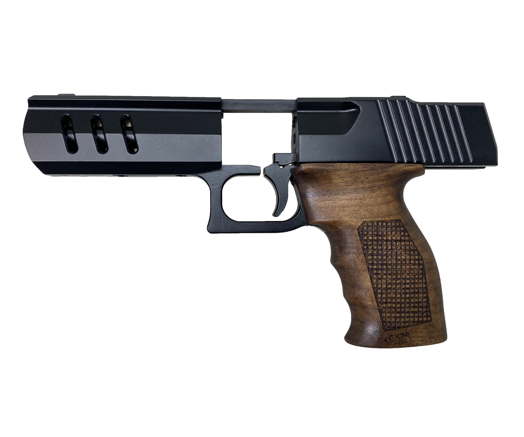 Пистолет Джокер Курс имеет удобную эргономичную рукоять из ореха, рамка пистолета изготовлена из цельного листа стали 65Г, а ствол изготовлен из стали 40Х это конструкционная легированная сталь, используемая при производстве деталей повышенной прочности.