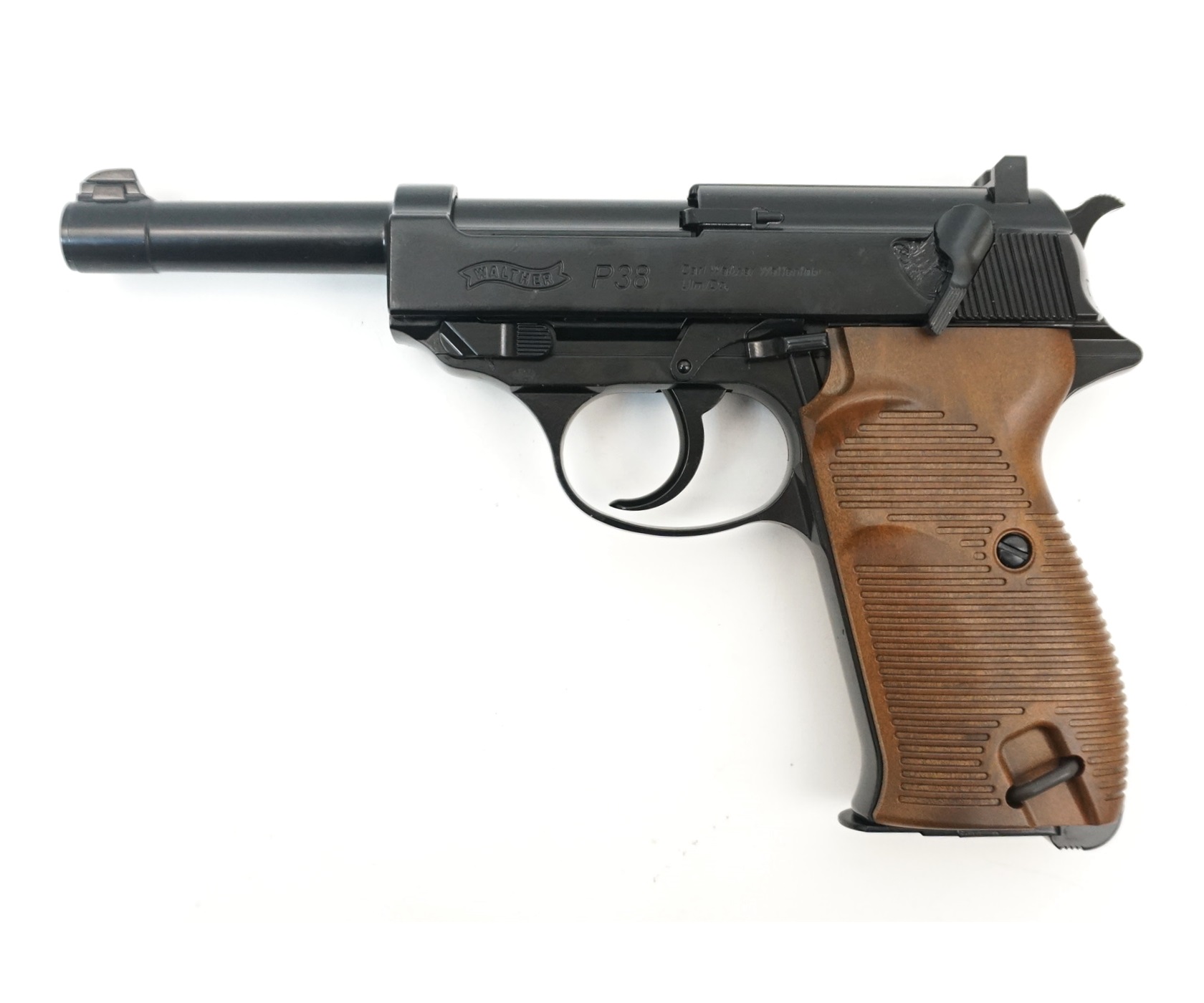 Umarex Walther P38 является пневматической моделью пистолета калибра 4,5 от хорошо известного качеством изделий производителя Umarex из ФРГ. Внешне модель представляет собою копию огнестрельного Walther P38, состоявшего на вооружении Вермахта с 1938. Это легендарный пистолет, пользовавшийся популярностью, помимо армии Рейха, также у советских военных. Он считался отличным трофеем, также использовался как наградное оружие.